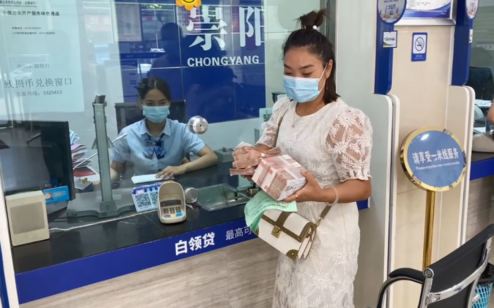 完成清点、分类、登记、封包等一系列环节后,在人民银行三级分支行的见证下,周女士来到崇阳农商银行残损币兑换窗口,现场兑换了147550元现金。
