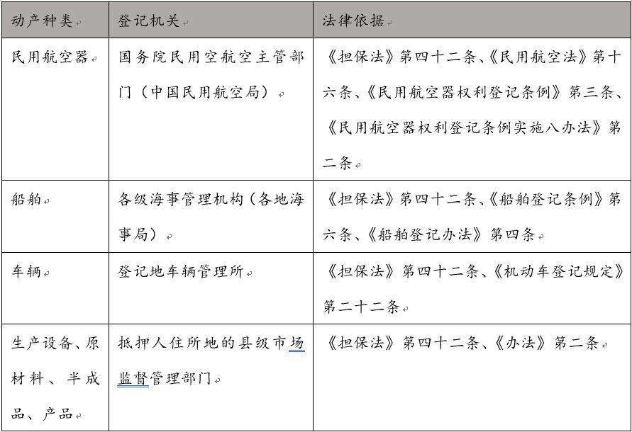 本文将重点介绍上述表格所列的最后一类动产(生产设备、原材料、半成品、产品)的抵押登记,即一般动产的抵押登记。