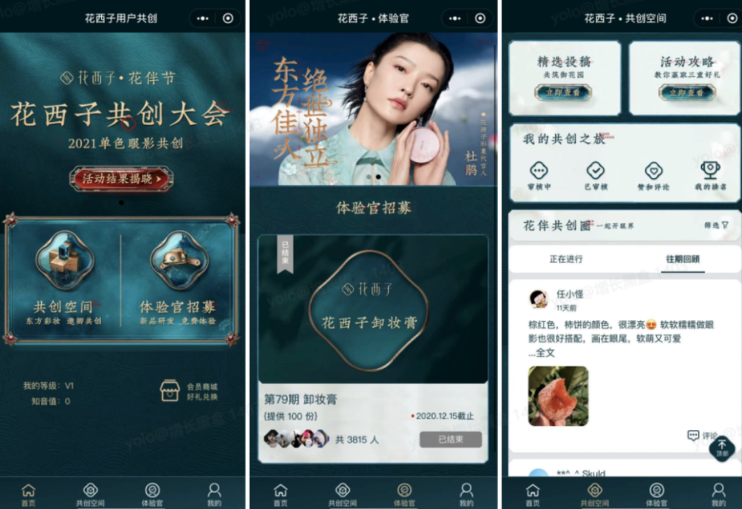除了国外历史悠久的知名品牌,国内新锐品牌也愈发依赖营销分析师的洞察建议,调整其营销等各个部门的商业决策了。例如:美妆护肤类品牌,花西子,就是借力当下热门的国潮风,从品牌创立之初就在微博深耕“消费者和品牌共创商品”的尝试,并于2019年讲此种新品研发的模式拓展到了微信小程序等其他营销渠道。