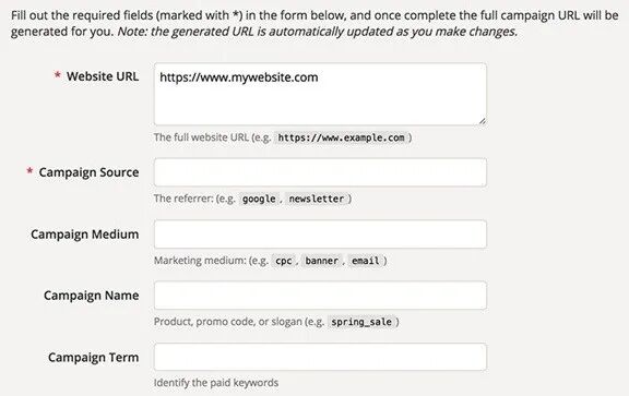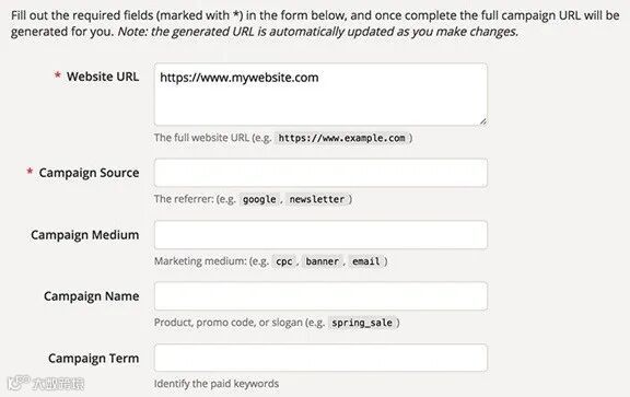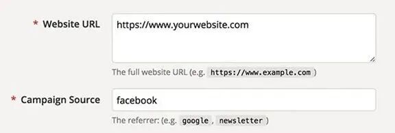 在Google Analytics中跟踪Facebook营销活动的第一步是为目标广告生成URL参数。简而言之,URL参数可以收集更多信息,是衡量和跟踪性能的最有效方法之一。而构建URL参数的最佳方法是使用Google Campaign URL builder。