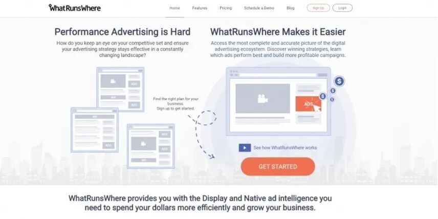 WhatRunsWhere在国际上覆盖了150多个显示网络和140个移动广告网络。它还收集横幅广告、文本广告和原生广告,拥有最广泛的数据库。