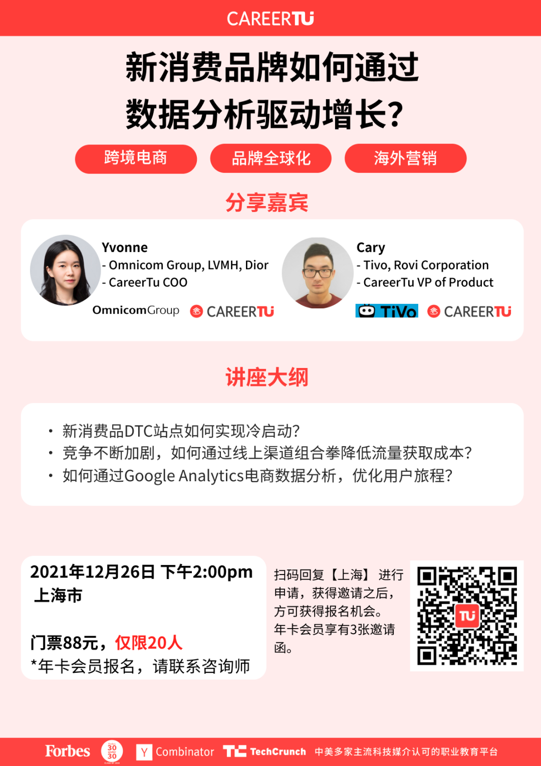 会员全年无限畅学品牌全球化技能:数字营销Digital Marketing, 商业分析Business Intelligence, 数据分析Data Analytics, 电商增长设计Growth Design、电商增长 Growth Marketing。