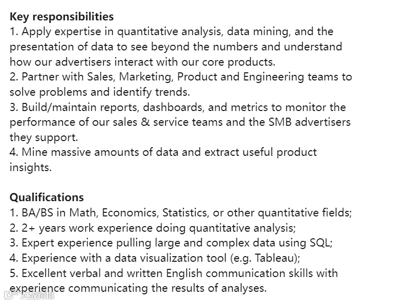 💡而这些公司对数据分析师的各方面能力也有明确的要求: