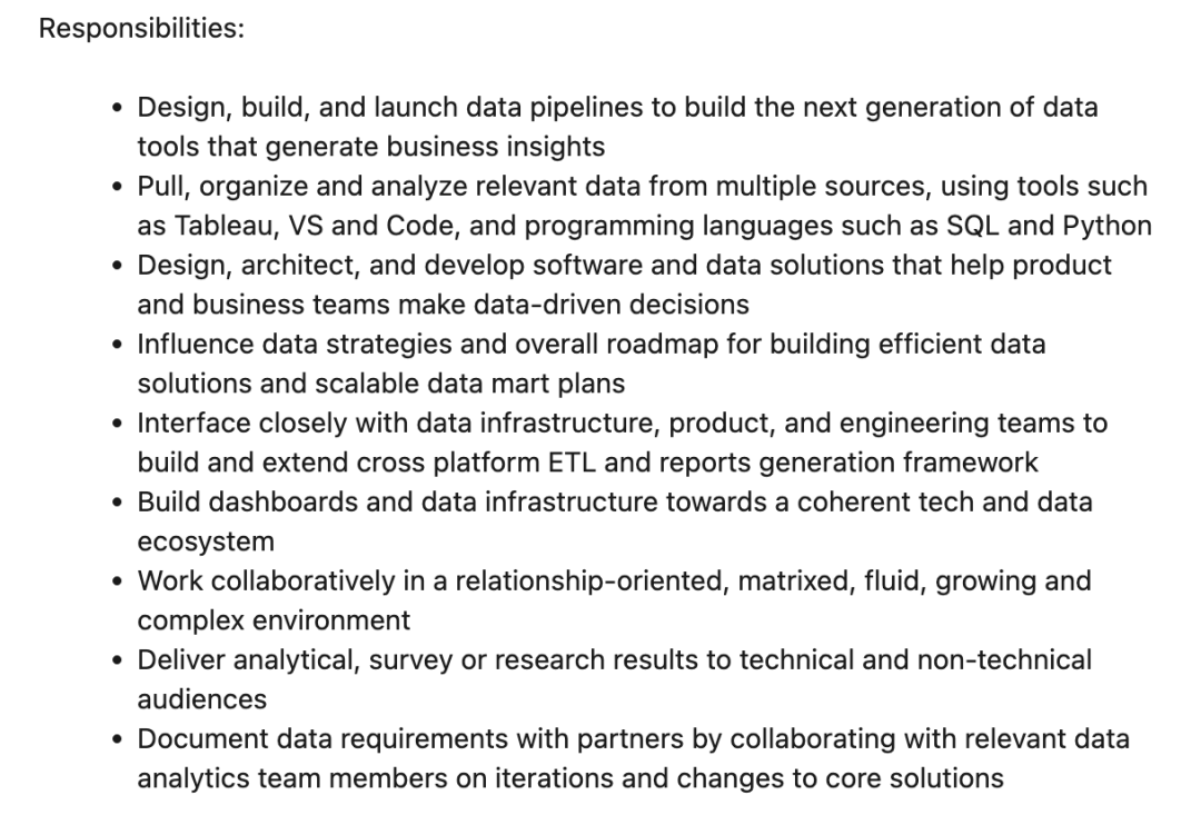 设计、架构和开发数据解决方案,从而帮助产品和业务团队做出数据驱动的决策。