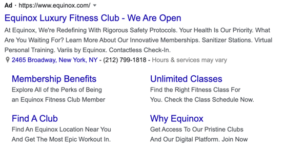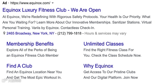 再比如Equinox公司也使用了类似的文案写作技巧,凸显企业形象的积极阳光。通过提前预判消费者的核心诉求,该公司在广告中有针对性的明确写出产品的健康和安全性,从而引发潜在消费者希望在疫情后重返该公司旗下的健身房。