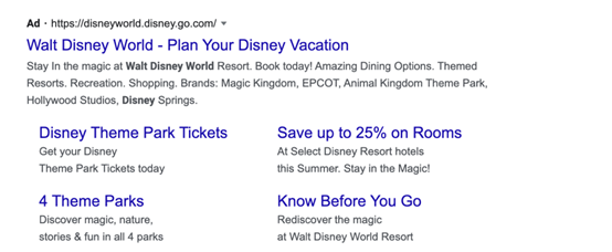 例如上面这则广告中,迪斯尼不断重复提及“留在魔法中”、“发现魔法”,甚至“重新发现魔法”的字样,以重申他们希望游客在主题公园体验或记得在过去的人生经历中体验到的惊奇和惊喜感。