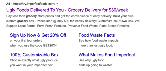 如果你是一位希望订购食品配送服务的消费者,请问你会首先对哪家公司更感兴趣从而点击广告了解详情,就不言而喻了吧。