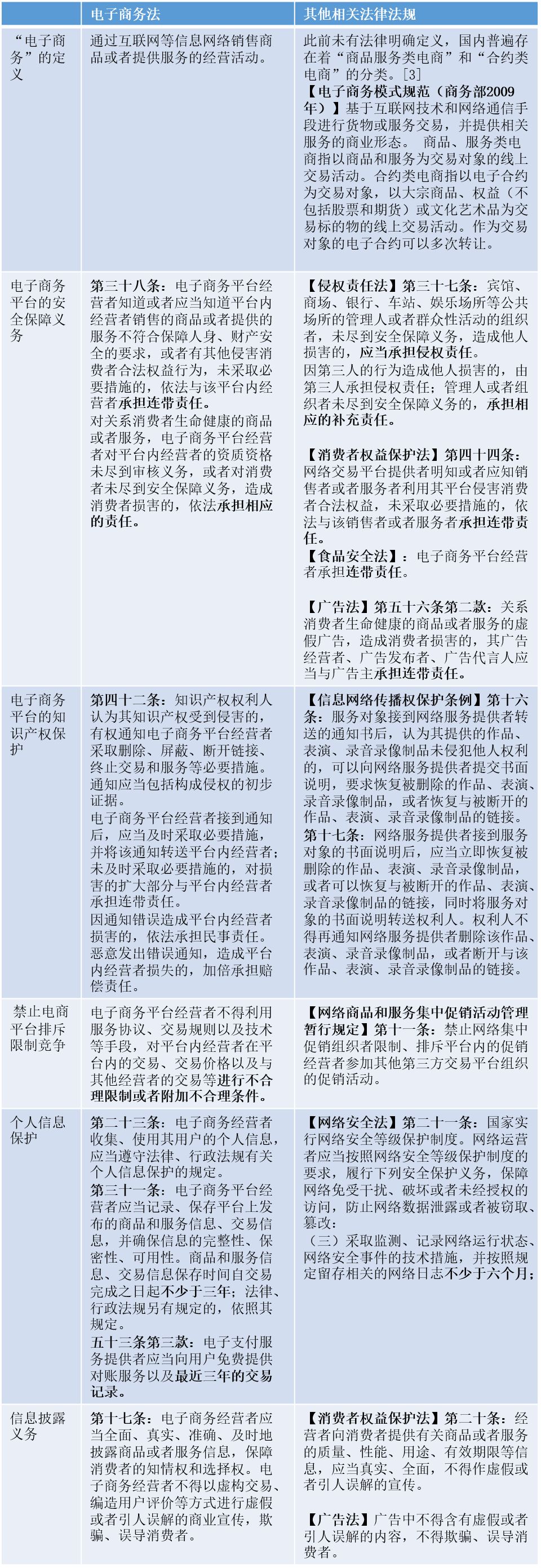 附:部分电商法与其他法律法规间条款对比