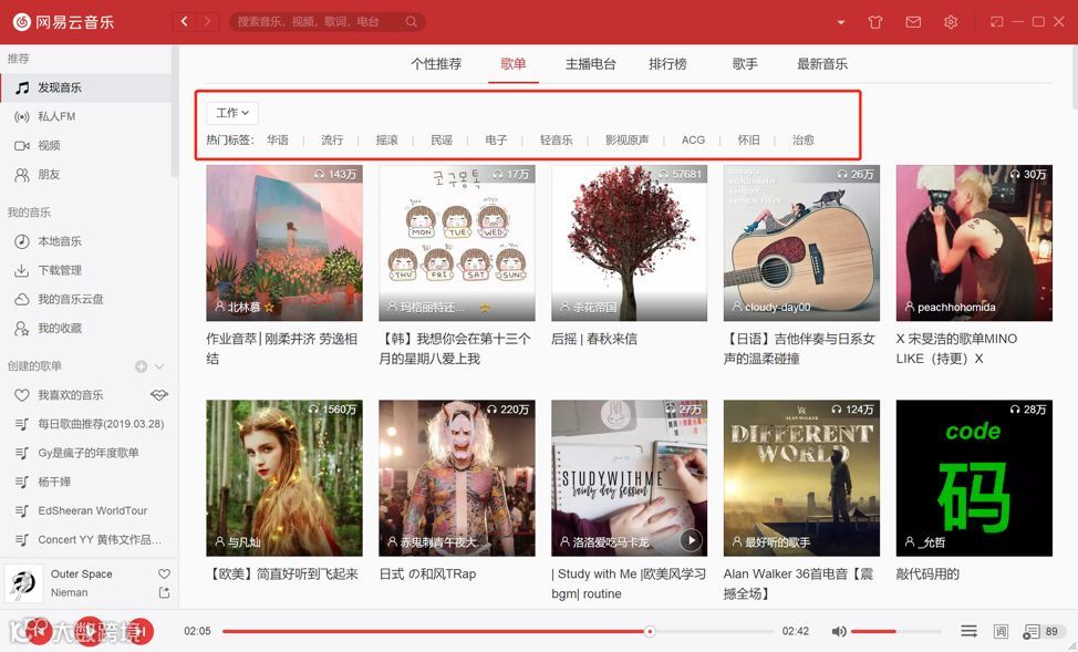 之前我们已经提过Spotify的三种不同推荐系统模型,那网易云音乐的推荐系统原理又是怎样的呢?实际上,两者因为都是音乐应用软件,他们所使用的原理也是大同小异的。除了同样基于用户及歌曲的协同过滤推荐模型以外,网易云还用到了基于音乐标签(Tag)的推荐模型。比如网易云的主打之一 -- “推荐歌单”,它的热门标签包括了不同风格类型的音乐,还可以根据不同场合和心情进行划分。