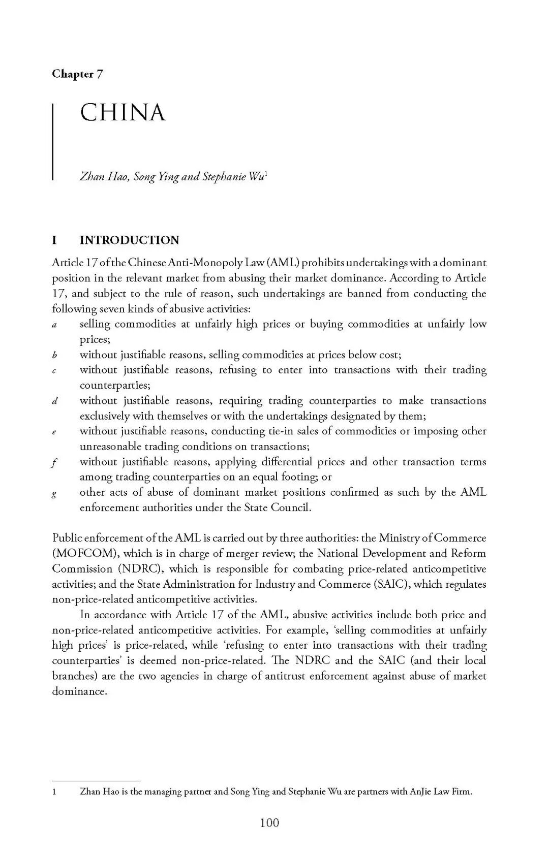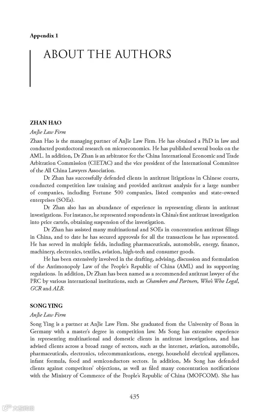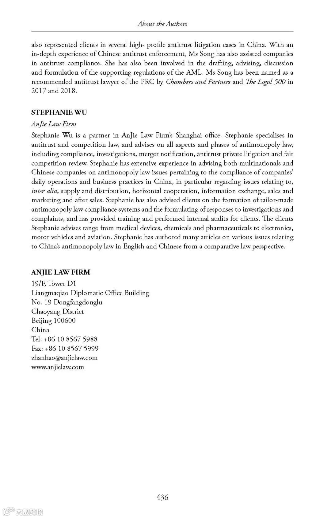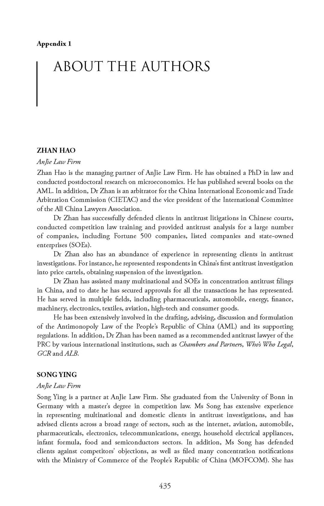 北京安杰律师事务所合伙人詹昊博士、宋迎律师与吴院渊律师作为中国地区特邀专家,负责起草本书中国章节部分。该书既是世界了解中国反垄断法的一个窗口,也为中国反垄断律师、学者以及跨国公司了解其他法域提供了非常有价值的参考。