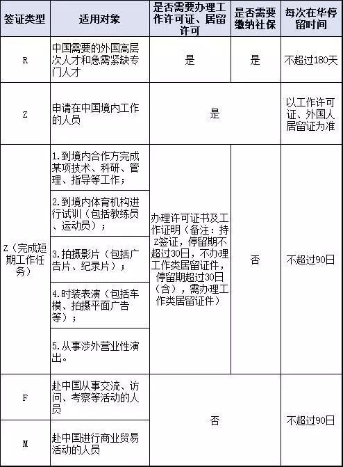5. 外国人在中国与工作、公务有关的常见签证类型