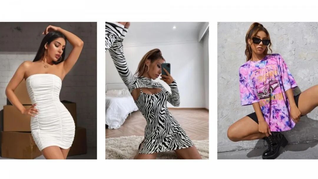 Shein 的每场拍摄都需要5轮的搭配,每款产品都要选5张图,对摄影师要求更是百里挑一,相比淘宝风,Shein从开始就追求、并保持了欧美简约风格。