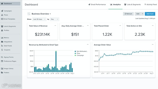 MailChimp的Essentials两个营销平台入门定价为每月12美元,另一个类似的营销平台HubSpot的最低门槛定价则为为每月49美元。相比较之下,Klaviyo起价为每月20美元的收费标准,即使是中小型用户试用之后启用付费版,也是妥妥负担得起哦!