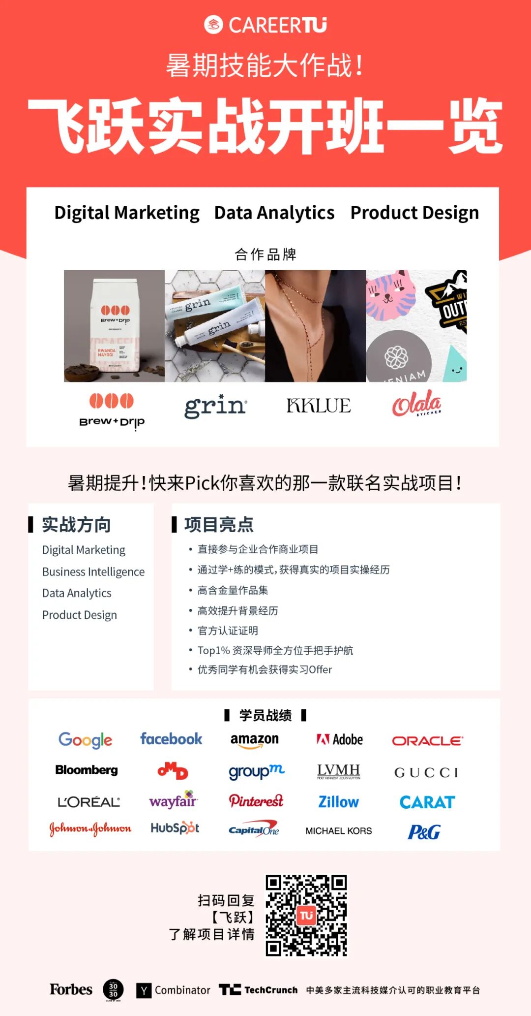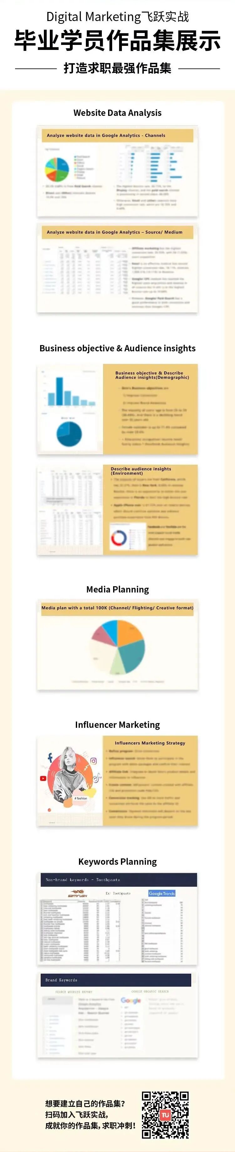 在此次飞跃实战项目中,涵盖市面上的主流的Google、Facebook和热门新兴的Amazon、Etsy等平台的实操,同学可以根据自己的求职目标来选择和分批多次实操练习!让你成为全球Job Market中的佼佼者,赋能企业的数字化!