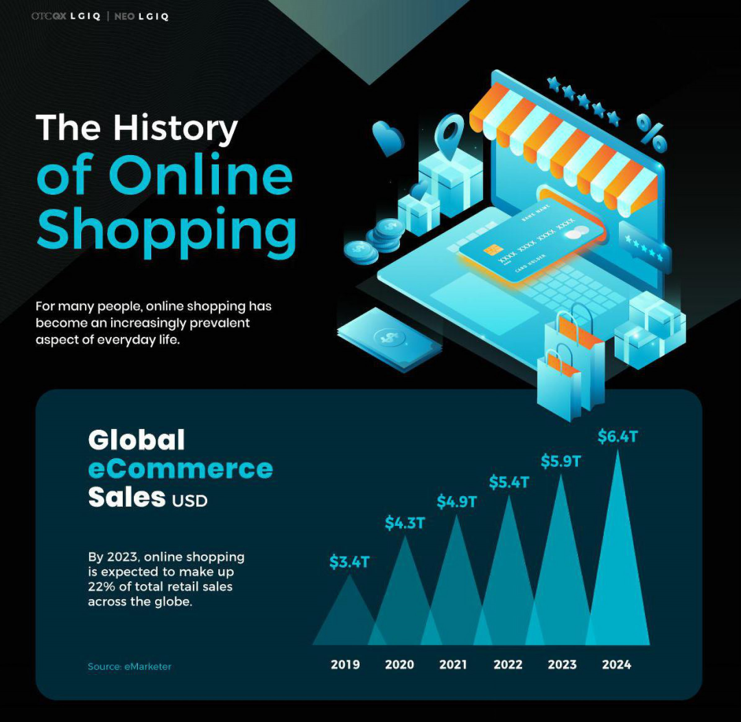 2023年,电商(电子商务)在线销售的份额预计将达到全球消费的22%。