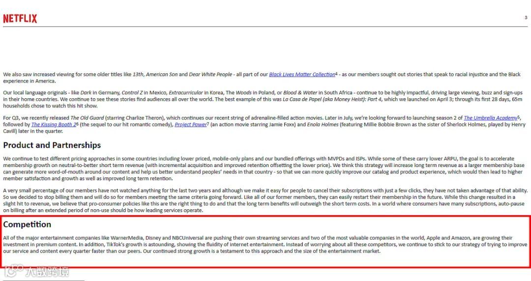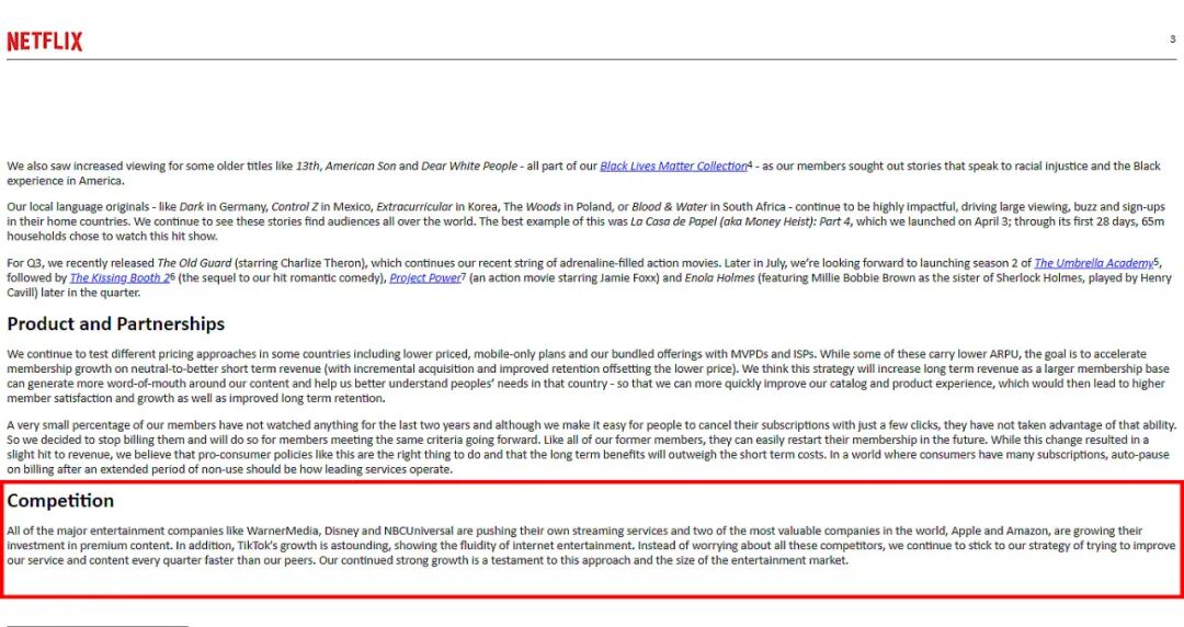 Netflix在去年在第二季度财报发布的股东公开信中,首次将 TikTok 列为竞争对手时,就明白了这一点。在 Netflix 看来,任何干扰Netflix提供服务的事情都是竞争,即使是睡觉的时间。