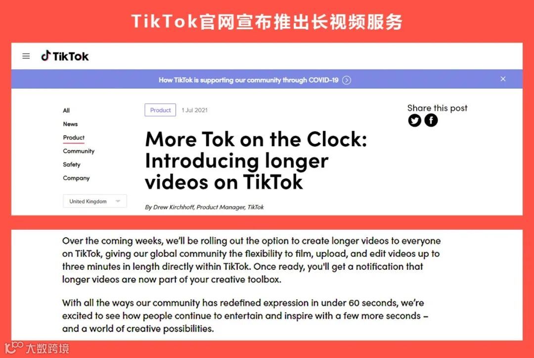 6月30日,Facebook的Instagram负责人Adam Mosseri宣布,计划开始向用户全屏显示其提要中的推荐视频。翌日,TikTok产品经理Drew Kirchhoff在官网发文称,该应用将推出更长的视频。