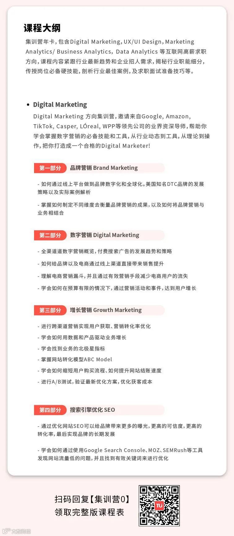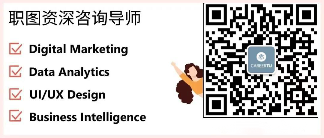 对于想要做品牌全球化和学习数字化技能的同学,职图针对当前热门的四大数字化方向——数据分析、商业分析、数字营销、UIUX推出的技能畅学年卡,能够让你在来自世界500强大厂的导师带领下,掌握数字化高薪岗位必备工具等硬技能。