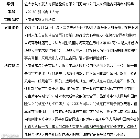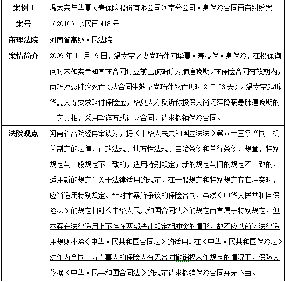 第二,合同法与保险法虽然是一般法与特别法的关系,但特别法没有规定的,仍应当适用一般法的规定。在保险法对合同撤销权制度没有规定时,应当适用合同法关于合同撤销权的规定,具有逻辑上的正当性。