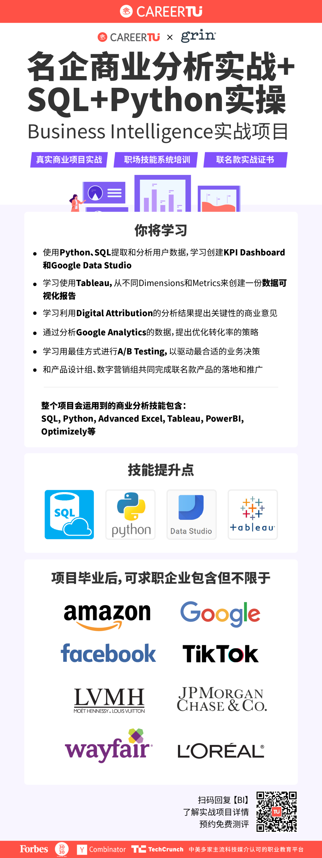 另一方面,在100%真实电商工作场景中,你将积累高含金量作品集,丰富简历,面试有话讲!求职硬实力+背景提升+丰富作品集,全面帮助你冲刺心仪Offer!