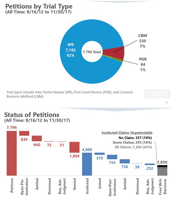 [2] 截止2017年11月,在作出最终无效决定的案件中,约80%案件的部分权利要求或全部权利要求被认定无效,参见https://www.uspto.gov/patents-application-process/appealing-patent-decisions/statistics/aia-trial-statistics