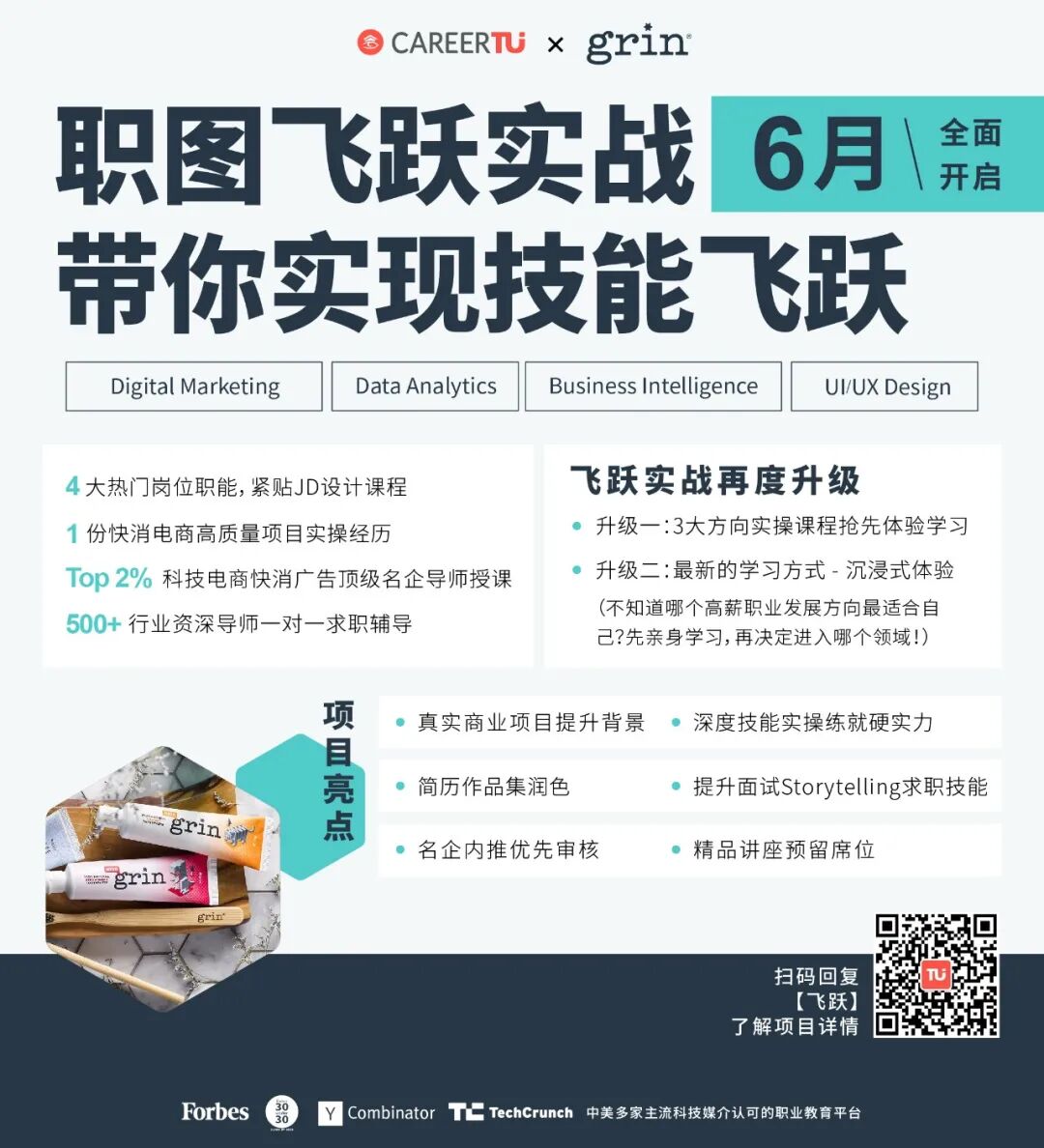 职图飞跃实战项目,邀请行业专家,企业高管,给你带来真枪实战的点评!模拟真实工作场景!Demo Day的优秀学员有机会获得暑期实习Offer!