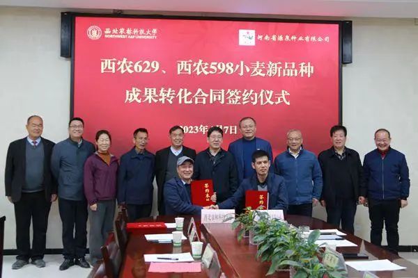 4月7日,由西农大闵东红教授团队育成的小麦新品种“西农629”“西农598”成果转化合同签约仪式举行,河南省源泉种业有限公司以226万元独家购买了2个小麦新品种在黄淮冬麦区南片的种子生产经营权。