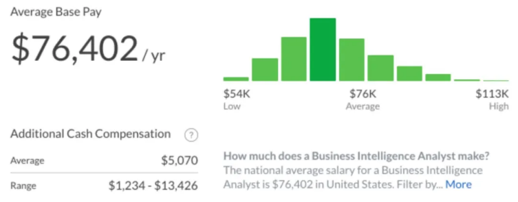 根据Glassdoor的数据,在美国,Business Intelligence的平均年薪达到了76402美元。