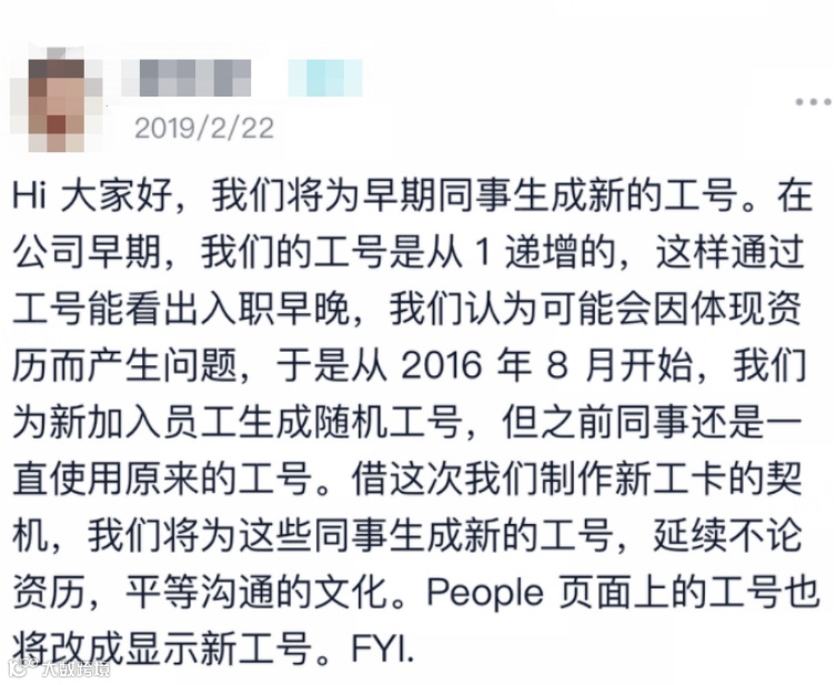 在我们的印象中,工牌上的工号往往都是从1开始,从大大小依次排序,通过工牌上的序号就可以一眼看出对方是公司的“元老”还是“新人”,对方在公司的资历一目了然。