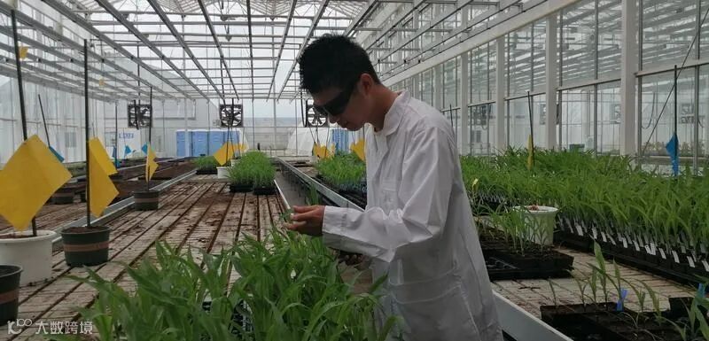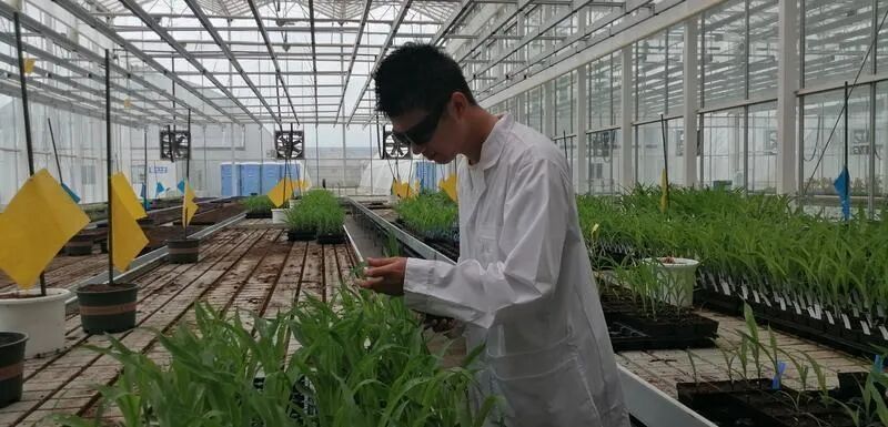 在先正达集团中国杨凌技术中心,工作人员正在观察玉米育种材料。