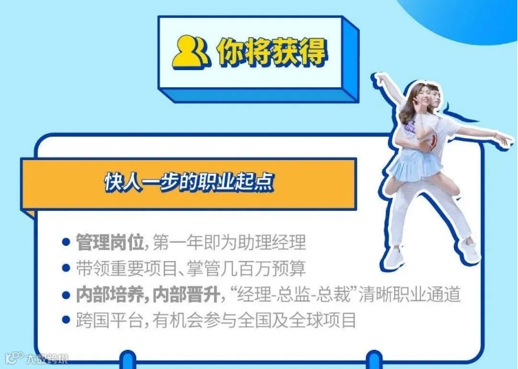以宝洁的Marketing部门管培生为例,你将拥有快人一步的职业起点,第一年就是助理经理,一年后就可以申请内部晋升,管培生项目结束后就可以带领团队和独立项目。