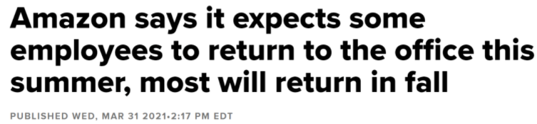 Amazon在上周表示,随着疫苗的普及,疫情的稳定,预计将会有越来越多的员工开始在夏季逐渐回到办公室工作。Amazon认为回归办公室进行线下办公会让员工间的工作和学习更加高效!