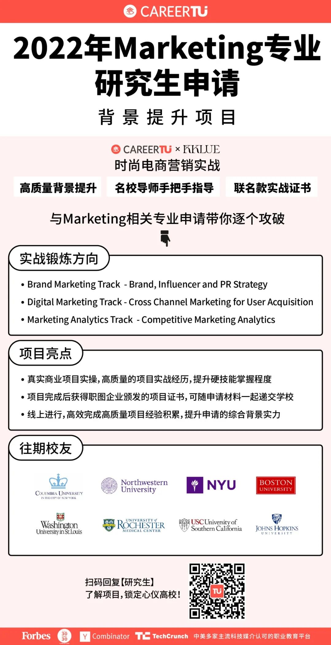想要成功斩获心仪Offer,重中之重是要有相关的、高含金量的项目经历、实习经历,在真实商业场景中去实操,掌握岗位必备技能。而职图飞跃实战项目可以帮助积累一段高含金量的实操经验。同时针对想要提升自己背景经历的同学,我们也推出了2022年研究生申请背景提升项目。