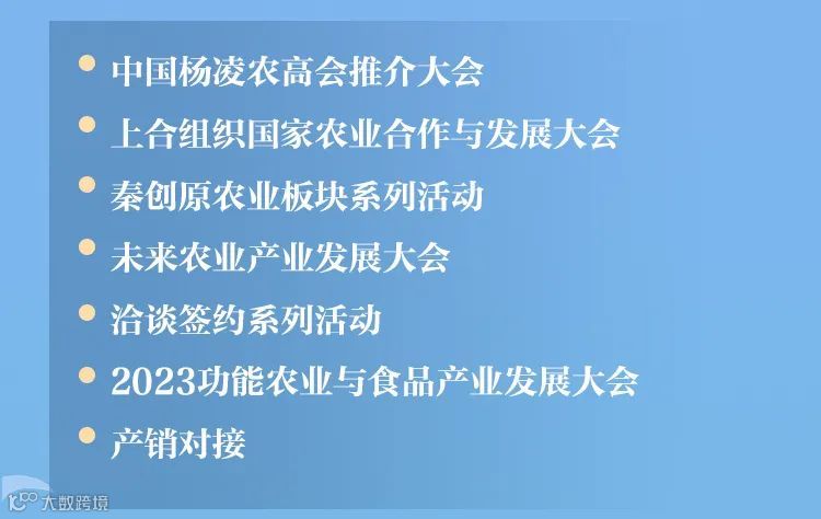 中国杨凌农业高新科技成果博览会(简称杨凌农高会)创办于1994年,是国际展览业协会(UFI)认证展会、中国5A级农业综合展会、中国农业十大品牌展会、中国驰名商标,品牌价值871.19亿元。每年10月25日-10月29日在陕西杨凌举办。