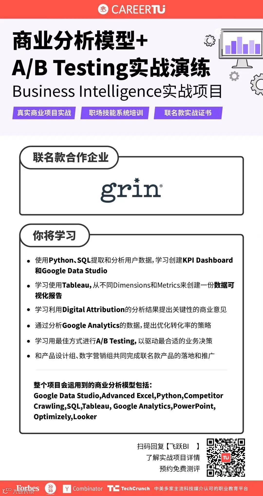 如果你想要熟练的学习分析技能,更重要的是在一个真实的商业项目中去实操,在实践中提升自己的硬技能和专业知识,同时有这样一份经历后可以通过更加具体的数据和经历,在求职中展示你的能力,更有说服力。