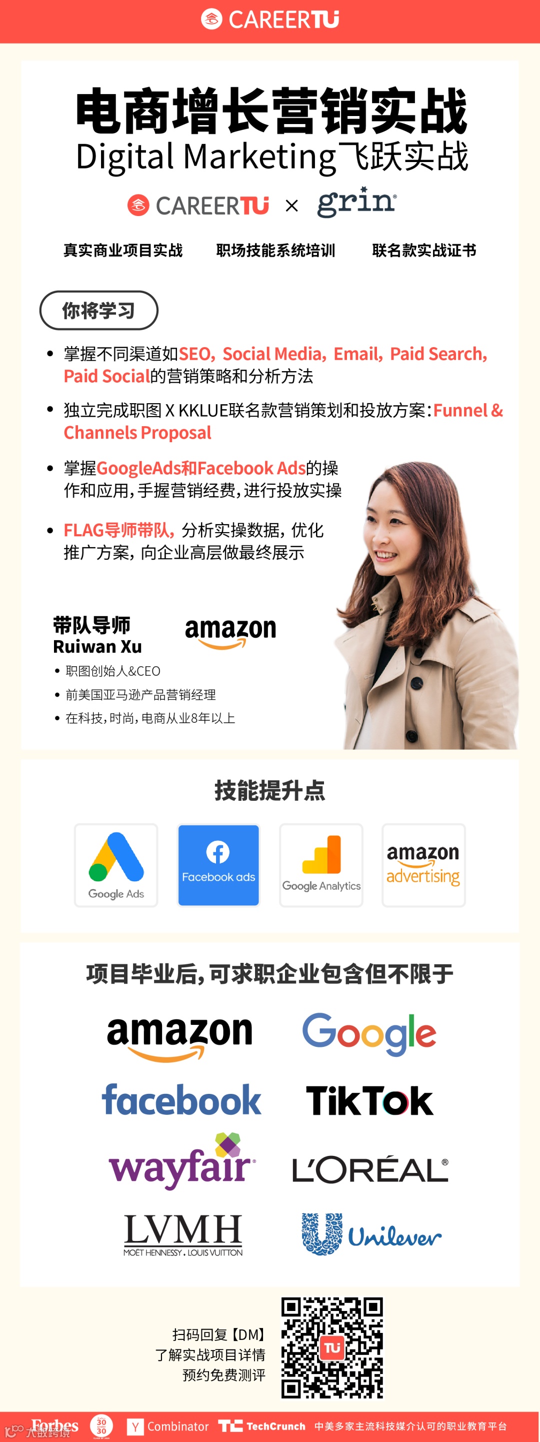 如果你也想和F同学一样斩获理想Offer,想要提前积累相关商业实操项目,在实践中提升自己的硬技能和专业知识。那就千万不要错过职图特地推出Digital Marketing飞跃实战项目。
