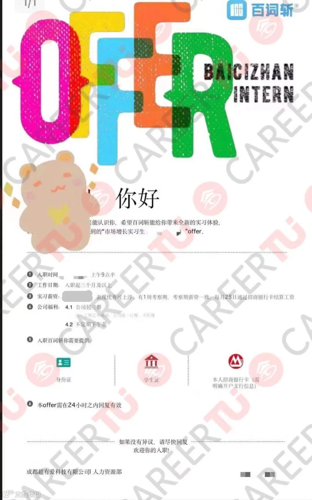 恭喜职图的F学员获得百词斩的Digital Marketing,Growth的Offer!F学员研究生专业为Marketing。为了在毕业前锁定更好的Offer,F学员报名了职图飞跃实战项目。