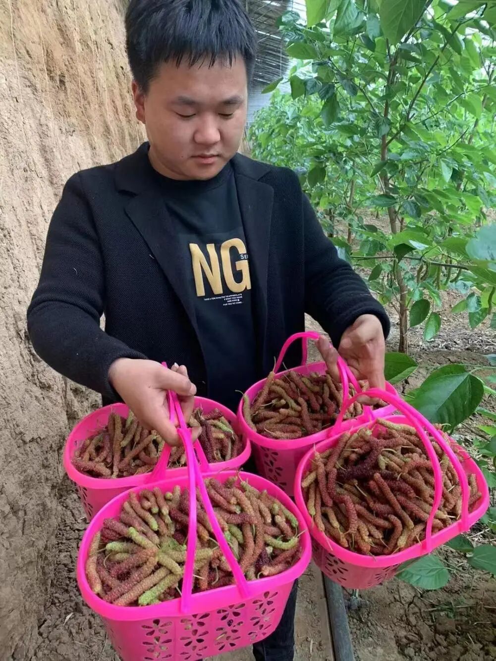 四川引进、四季采收、果形细长、甘甜清香……在位于农科城杨凌美好一生农园大棚内,一种名叫紫金蜜桑的桑葚刚刚采收完今年的第一茬果实。“130元一斤,在市场上很抢手,关键是好吃。”马坤边笑边享受着丰收的喜悦,而在他的背后,更有一份“甜蜜”的事业。