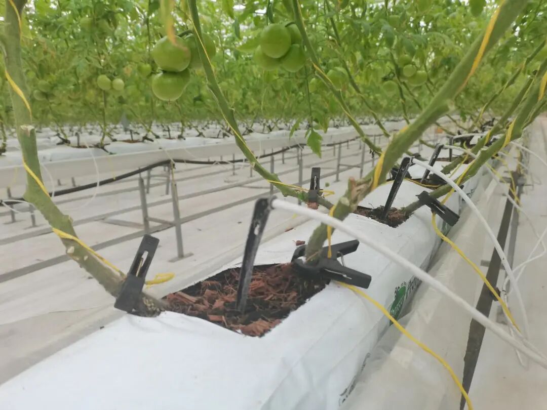 在这座宽敞明亮的温室大棚内,处处隐藏着“大智慧”。“可别小瞧这座温室大棚,无土栽培、精准水肥控制、自动化番茄采摘车、补光灯、生物防治、熊蜂授粉等,很多先进、智慧的种植技术,在这座棚里都能看到。”罗新龙介绍说。