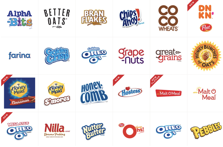 今天故事的两位主角Post 和 Kellogg's旗下也有非常多的产品线。