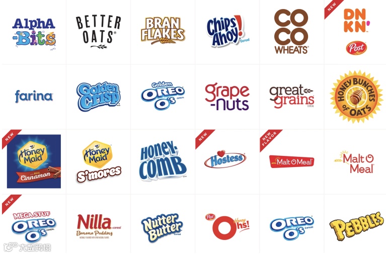 Post旗下的知名产品就有奥利奥,Nutter Butter,还和Dokin Donut 联合推出了新的产品Dunkin'™ Cereal。