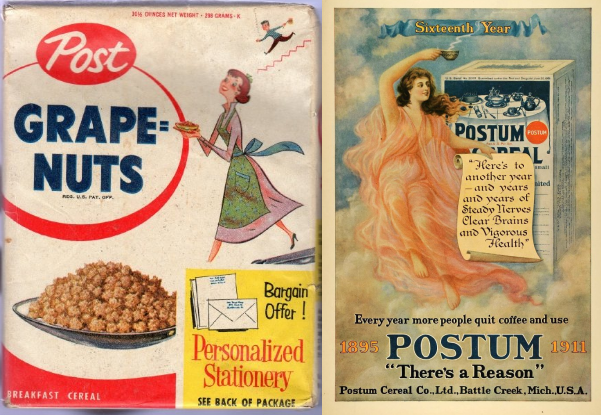 他们生产麦片的工厂,也就在疗养院中,其中有一位疗养院的病人C. W. Post,在协助生产的过程中,记下了麦片的生产配方。自己创建了公司,开始制作销售麦片Grape-Nuts,和“谷物饮料”Postum,一种由谷物和糖蜜制成的咖啡替代品。这两样产品,帮C. W. Post在1900年赚了300万美元。