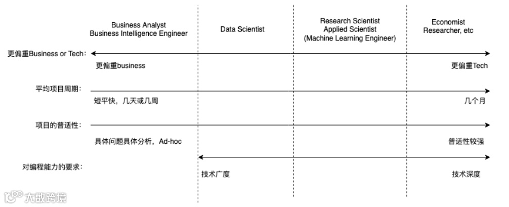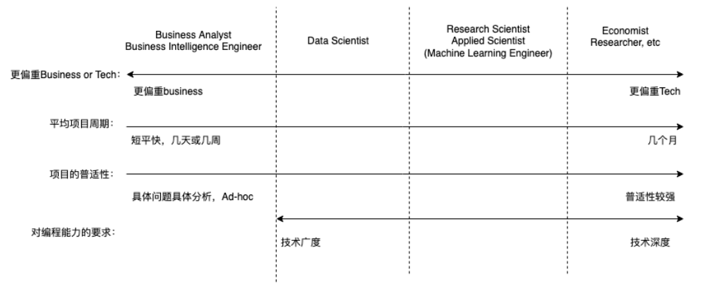 Business Intelligence Engineer和Data Scientist更需要SQL的能力,从Data Scientist到Economist/Researcher是从技术广度到技术深度的变化,在业内,更推崇的是T型人才,既有广度也有深度。