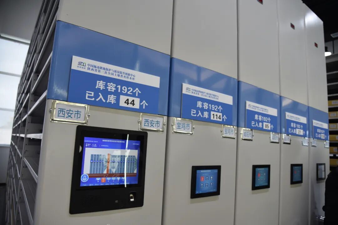 期间,中心承担了“陕西省第三次全国土壤普查样本库”的建设工作。截止目前,样本库已全面建成并投入使用。同时完成了陕西省 10 个地市 11 万个耕—园—林—草土壤表层样品和 1000 余个土壤剖面以及全国 30 个省市、自治区 7000 余个耕地表层土壤样品的采集与入库工作。样本库的建成投用可为研究、分析、保护和提升耕地质量提供全方位的数据和技术支持。