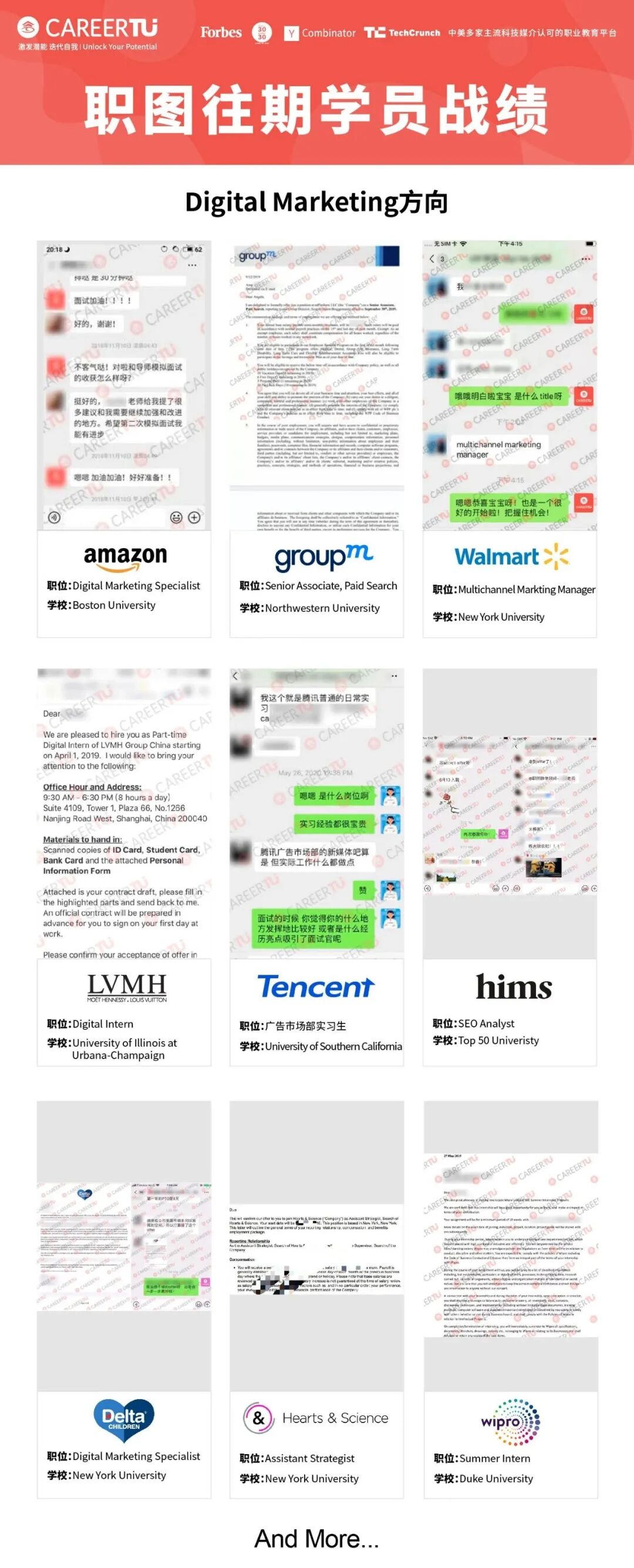 CareerTu有很多同学斩获了Amazon、Walmart、GroupM、Tencent等国内外名企的Digital Marketing岗位Offer!