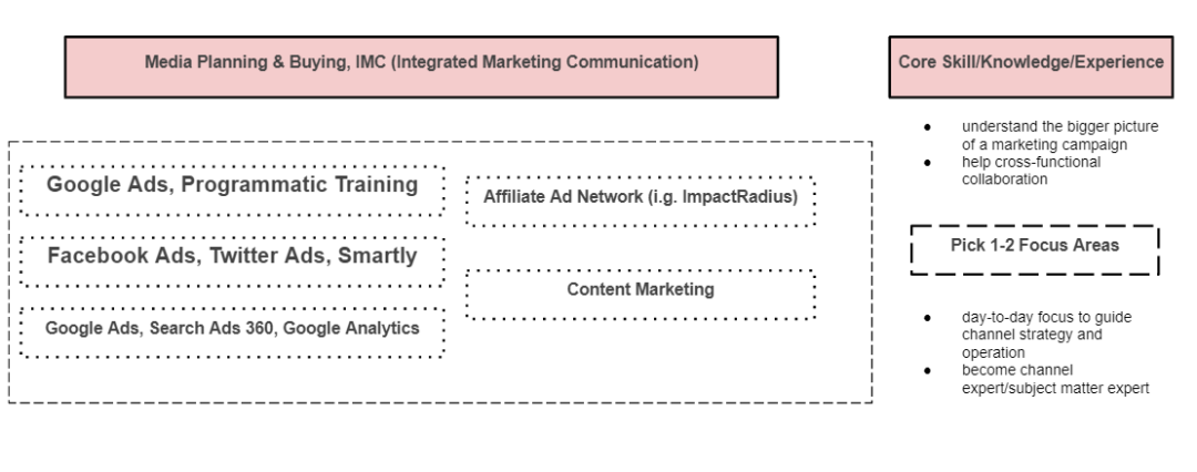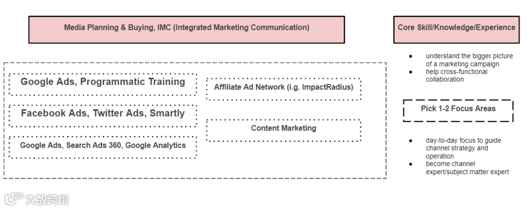 主要职责:建立渠道级策略,管理渠道平台上的活动以达到业务目标,引导渠道级创意策略,跨渠道合作,进行营销渠道实验