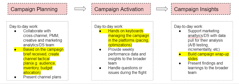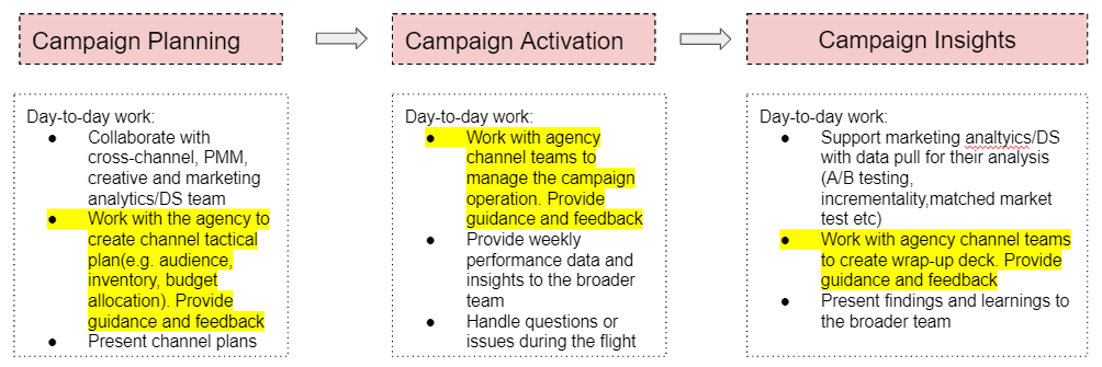 Understand the scope of the role is important (in-house vs vendor management, strategy focused or campaign management focused)