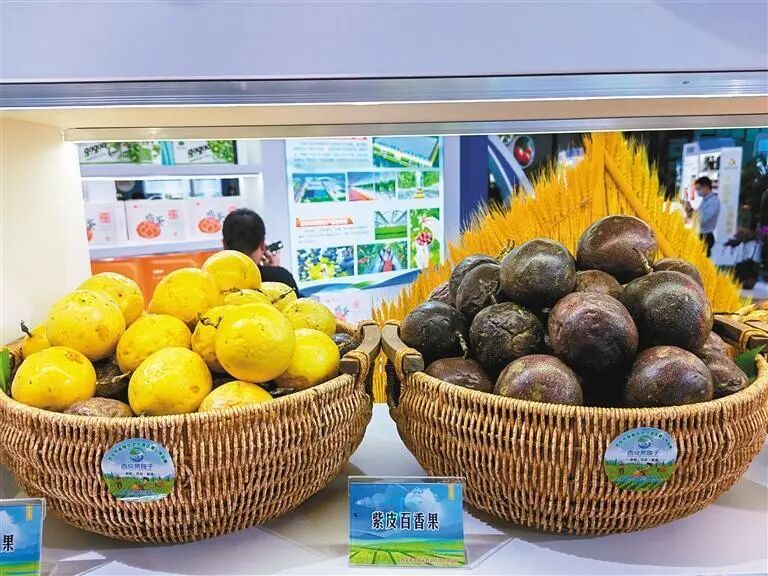 在“帆船”的后方展柜上,“南果北种”取得成功的紫皮百香果、黄金百香果芳香四溢,“红黄搭档”红心火龙果、无刺黄龙火龙果夺人眼球,高陵鲜食枣青翠甘甜,黄绿色的阳光玫瑰让人垂涎欲滴。