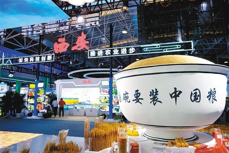 临潼的石榴、灞桥的葡萄、长安的鲜花、蓝田的荞麦、高新的美酒……曲江把“楼观都市现代农业产业园”也搬到了农高会,西安现代广袤农业农村发展的成就浓缩在这342平方米的方台间,100多个鲜活农产品和加工产品化作“代言人 ”,展现着我市农业大发展的新成就、大成果。