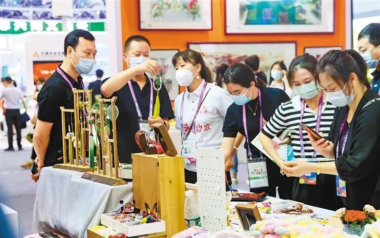 编织、刺绣、剪纸、干货、果蔬、果酒……9月15日,第29届杨凌农高会B馆的巾帼科技助农暨特色产业成果展厅里,琳琅满目的妇女手工艺品和种类多样的农副产品吸引着八方来客。